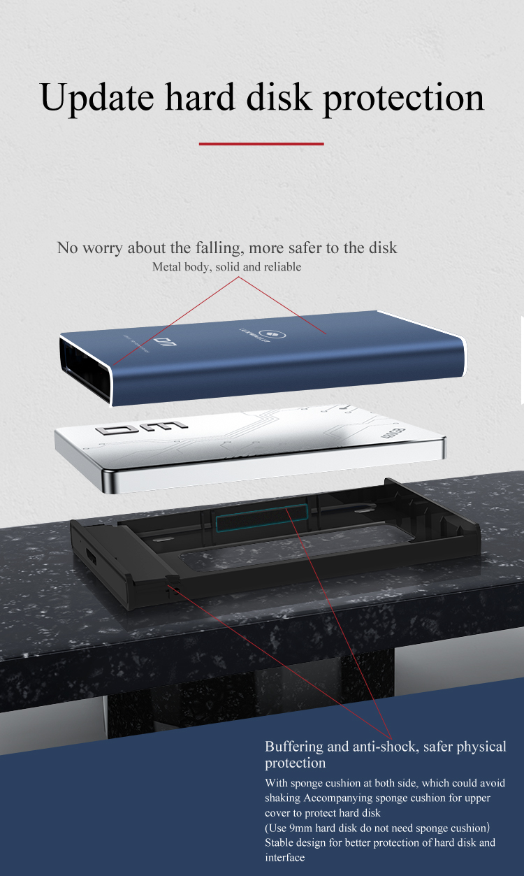 1. 2,5 ” harde schijfbehuizing, 5GBS hoge snelheidstransmissie.