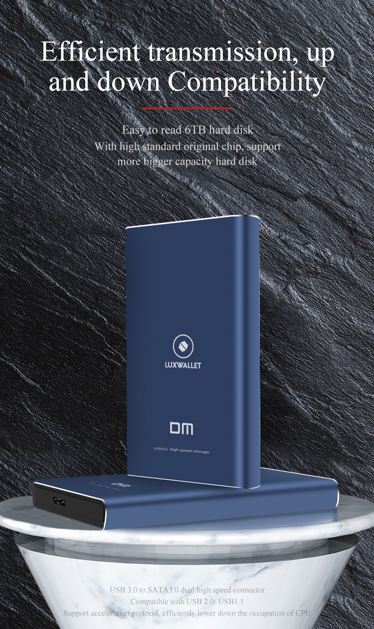 Maak kennis met de LUXWALLET Harde schijf behuizingen. Deze 2.5 inch harde schijf behuizing is gemaakt om je harde schijf in een behuizing te zetten en via de case te bedienen. De behuizing case ondersteunt harde schijven tot 6 TB en zet 4k bestanden over in 6 seconden (400Mb/s). (volgens de testresulataten van de fabrikant), deze kunnen per computer, bestand etc verschillen omdat er met meerdere factoren rekening wordt gehouden zoals de juiste apparaturen waarmij het het mee verbindt etc. (Let op: Dit is een externe behuizing. De harde schijf ziet er niet ingebrepen).