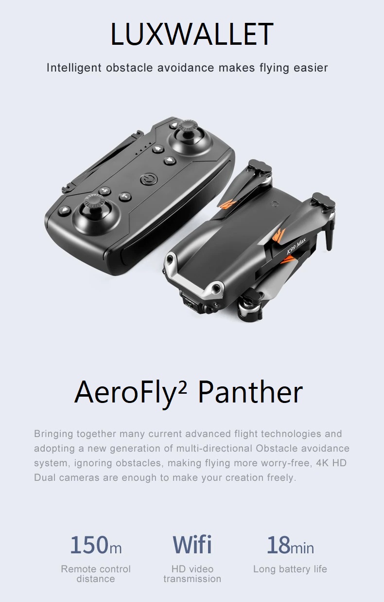 Maak kennis met de AeroFly² series drone van LUXWALLET®. De AeroFly² drone is ontworpen voor beginners om de drone zo veilig en gemakkelijk mogelijk te kunnen besturen. Deze lichte drone weegt maar liefst 94 gram en beschikt over talloze functies. Je hoeft je geen zorgen te maken over en crash. Door de ingebouwde sensoren zorgt deze drone er automatisch voor dat het niet tegen een object aanvliegt.