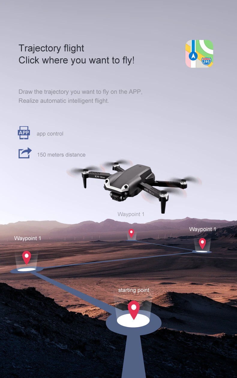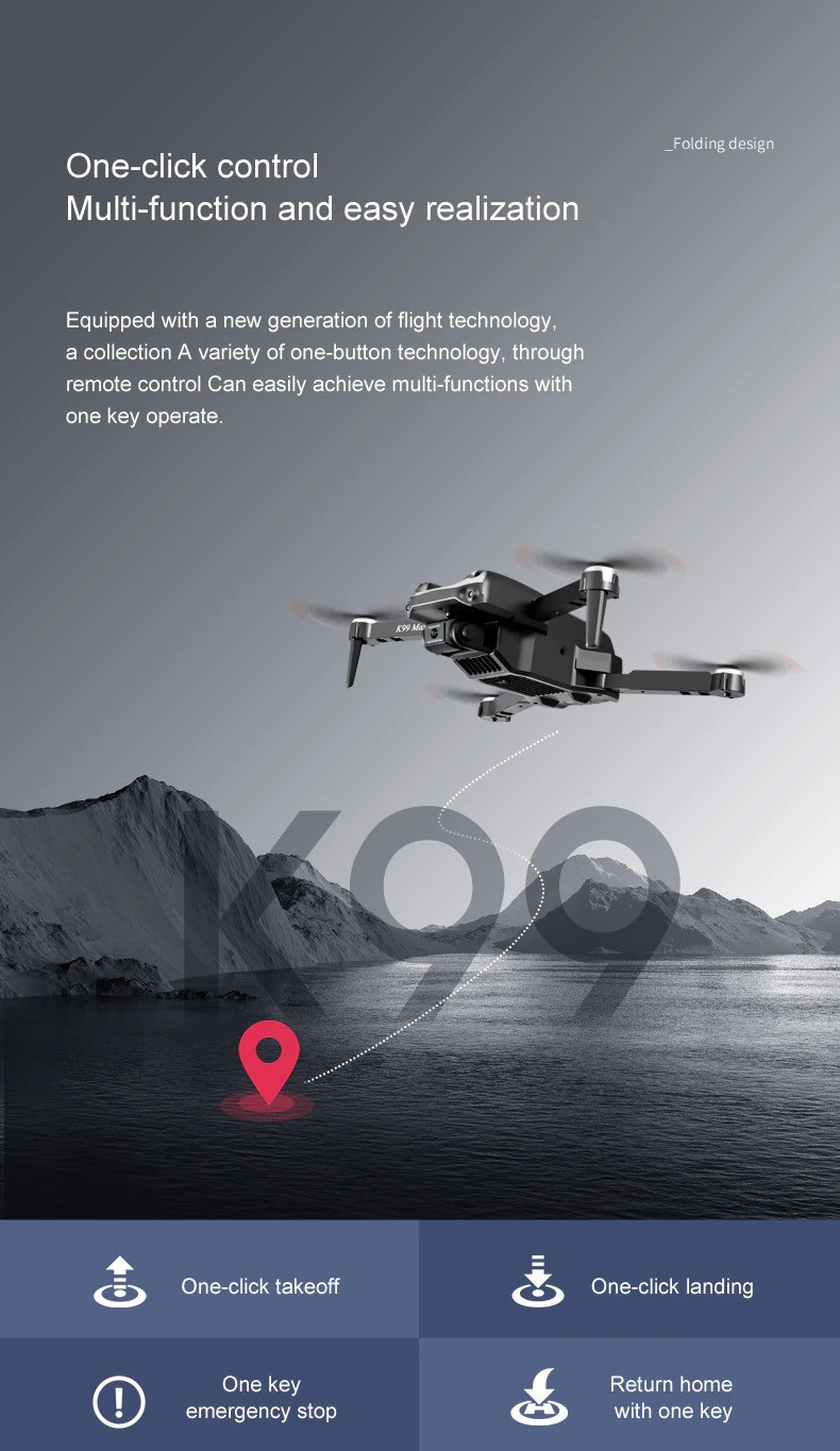 – De ingebouwde terug naar home (RTH) functie zorgt voor een veiligere vlucht. Wanneer de batterij laag is of het signaal zwak is, kun je op de terugkeer knop drukken. De drone zal automatisch terugkeren naar de startplek. Je hoeft je dus geen zorgen te maken over een drone die wegvliegt.