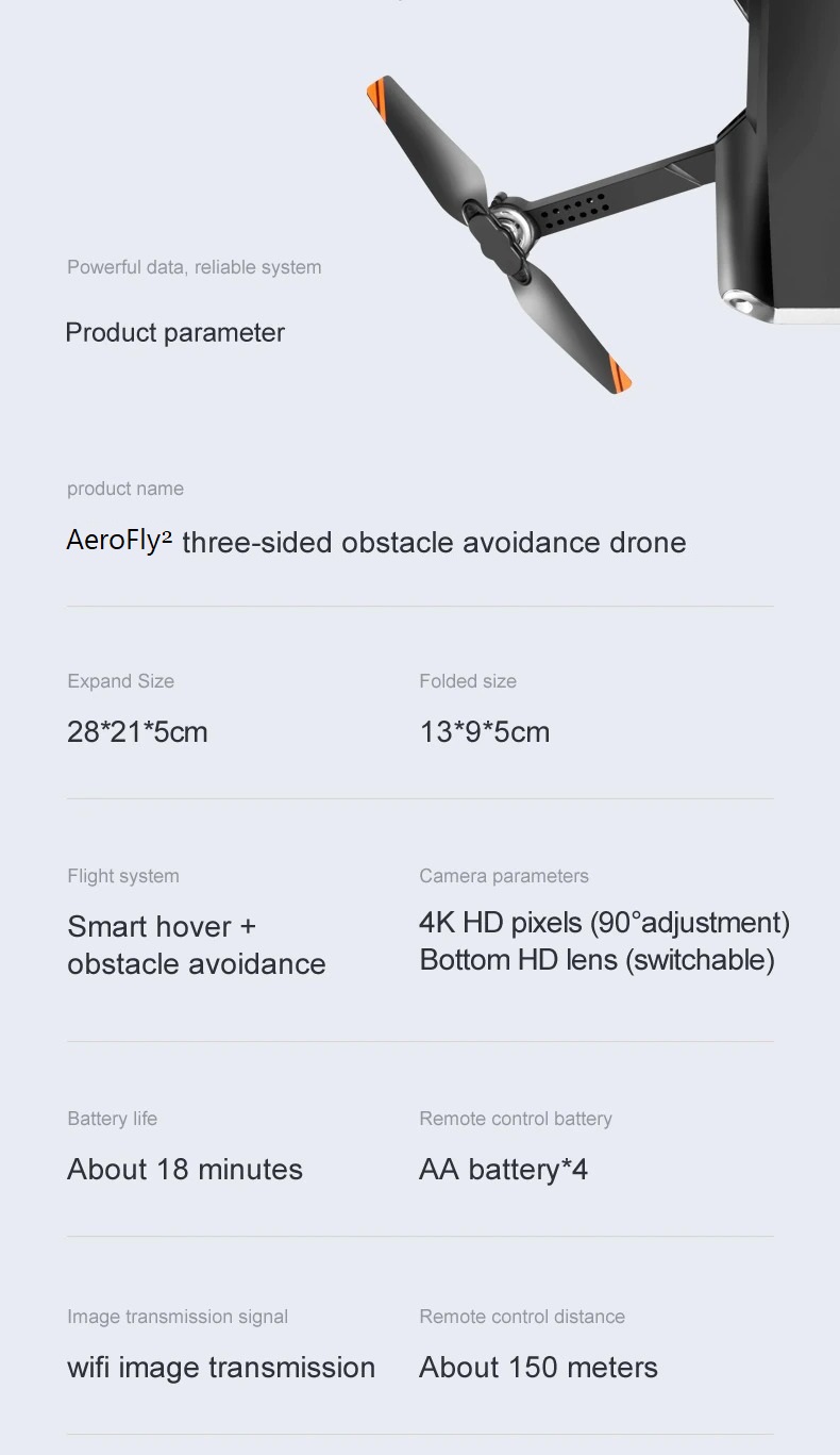 – Infrarood functie: De drone zal obstakels in de lucht tot 60 cm ontwijken. Je hoeft je dus geen zorgen meer te maken over kapotte drones. Deze drones ontwijkt solide objecten om zo een crash te voorkomen. De AeroFly² serie is daarom ook perfect voor kinderen en beginners.