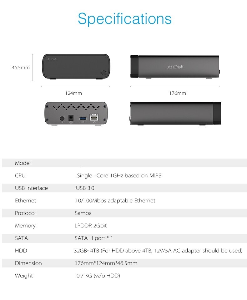 – Ondersteunt 4TB Harde-schijf met hoge capaciteit.