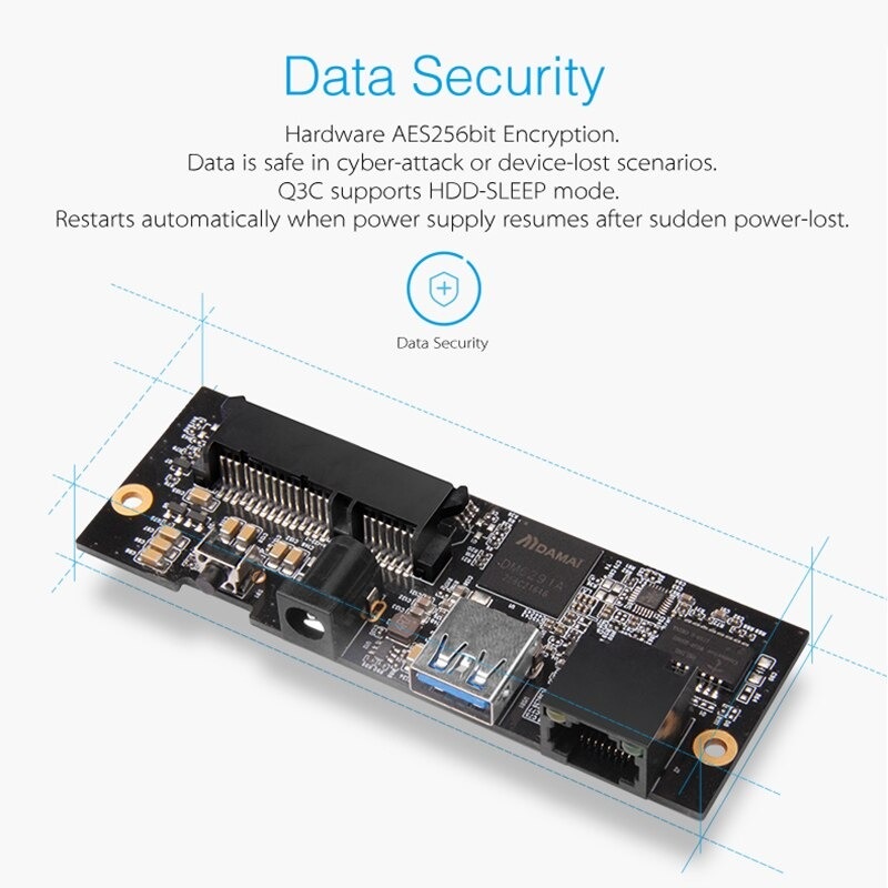 LUXWALLET AirDisk Q3C Linux – Behuizing Voor Netwerk Harde Schijf – HDD 3.5 SATA III – Mobiele App – Plug & Play – Zilver