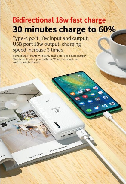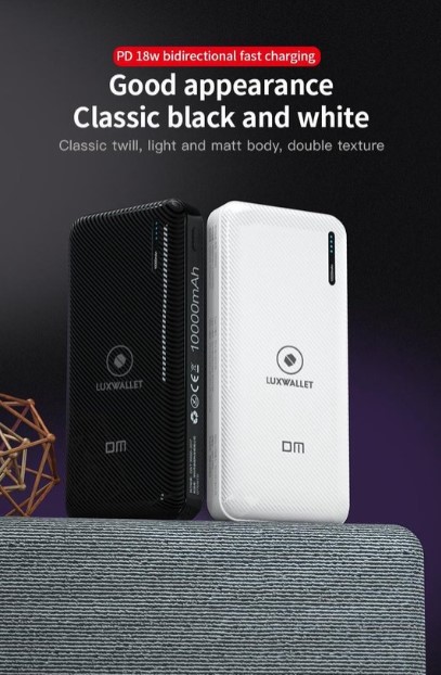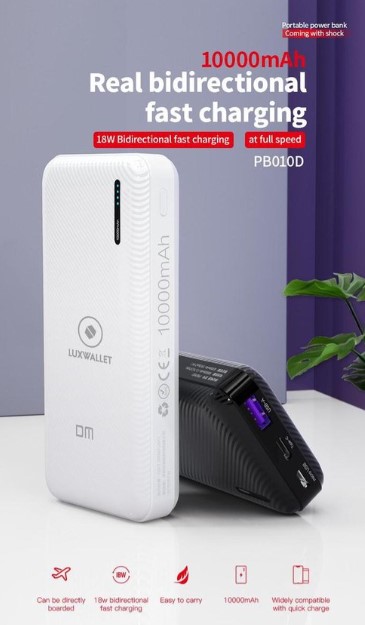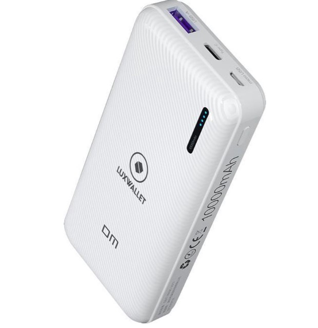 De LUXWALLET DM3 Pro powerbank met USB, Micro USB en USB-C ingangen. Handig om op reis te gebruiken in de auto of op kantoor. De DM3 pro weegt slechts 201 gram en heeft 10.000MAH aan vermogen.