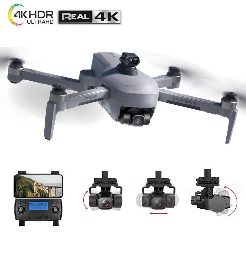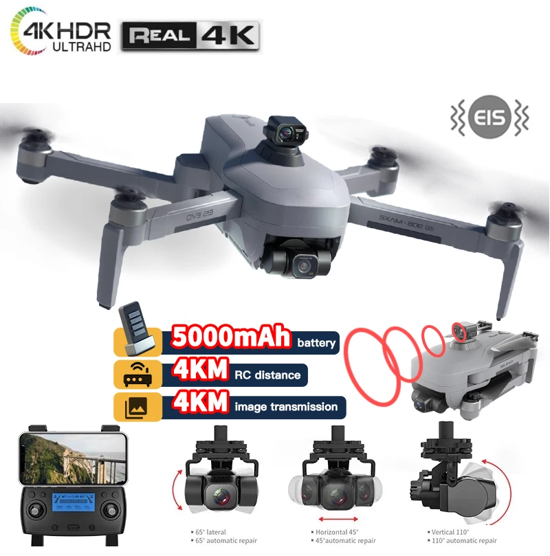 – 4K Foto Camera met 3-assige GIMBAL + Groothoek: Je kunt professionele foto’s schieten met de ingebouwde camera. De 3.2 inch camera schiet 4K HDR Foto’s in zowel licht als in het donker. De GIMBAL met EIS zorgt ervoor dat het beeld van de drone altijd even recht en scherp blijft, ongeacht je vliegstijl.