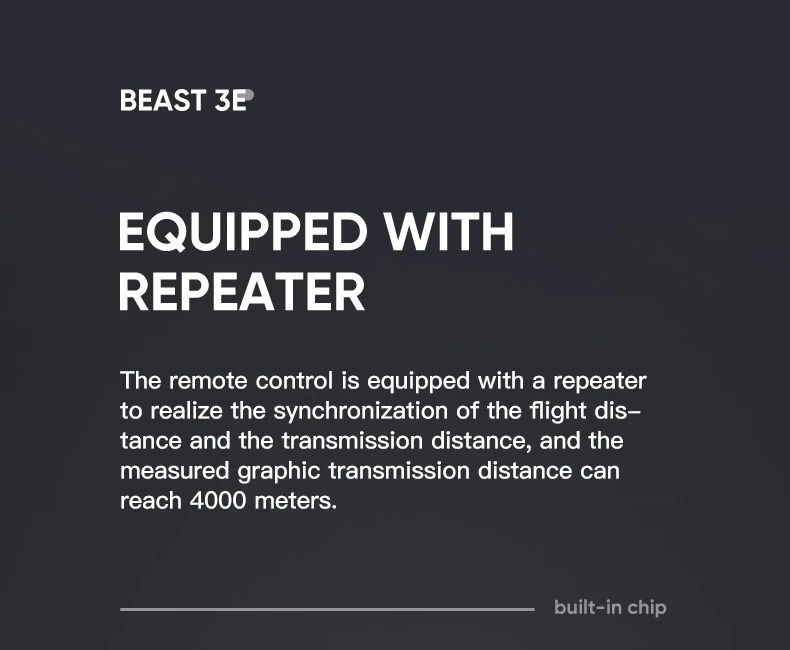 – Ingebouwde repeater in de afstandsbediening (tot 4000 meter vliegen)