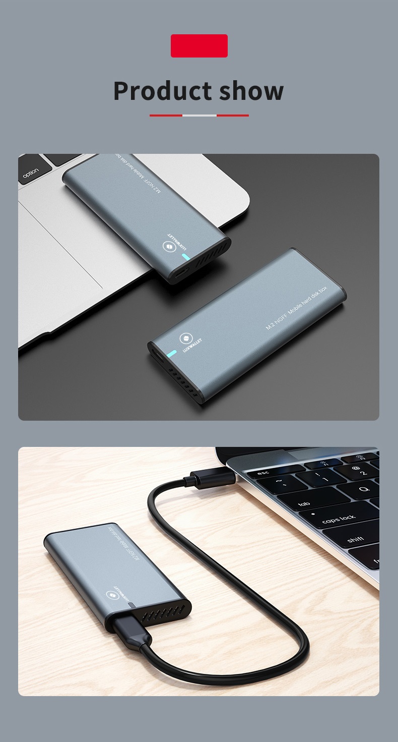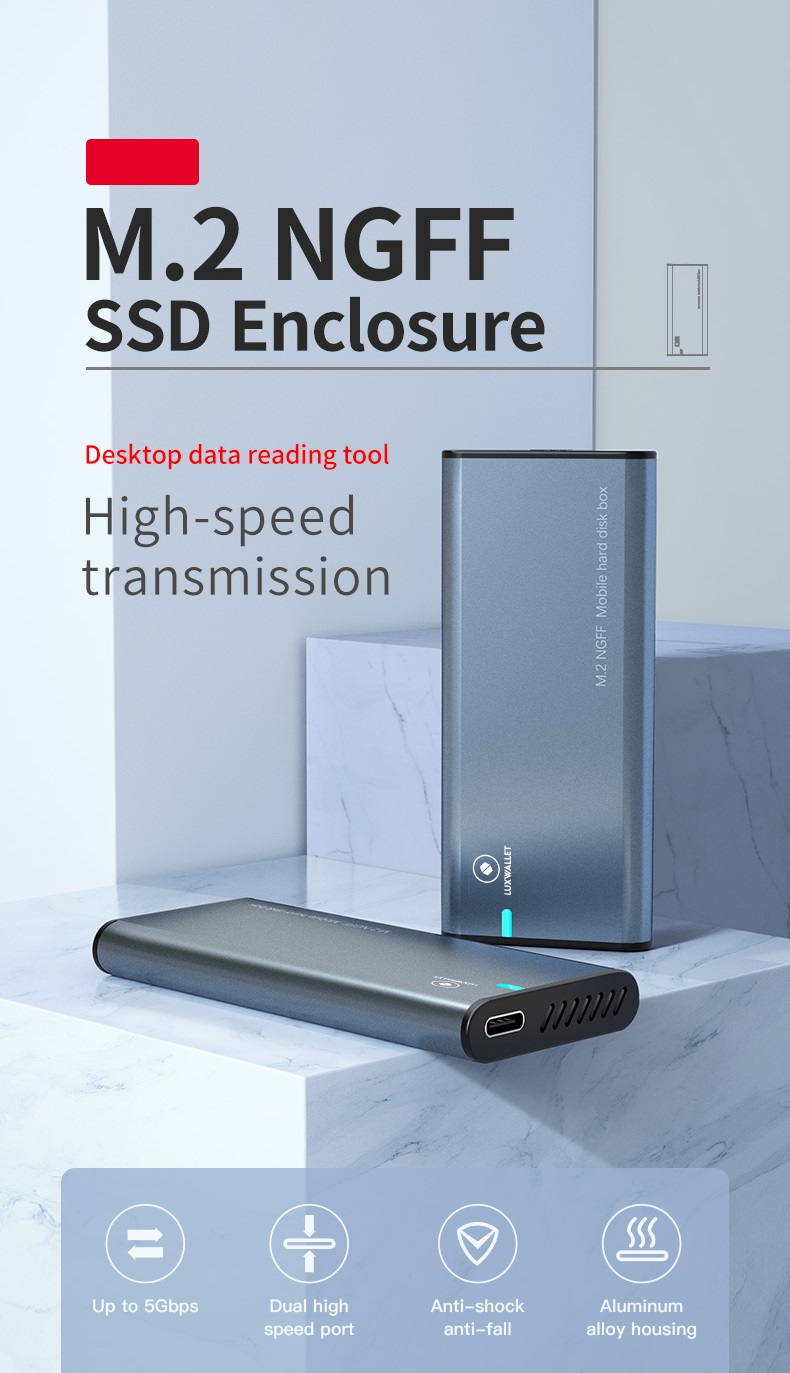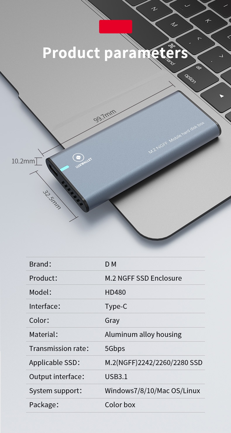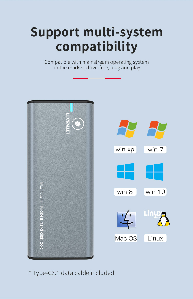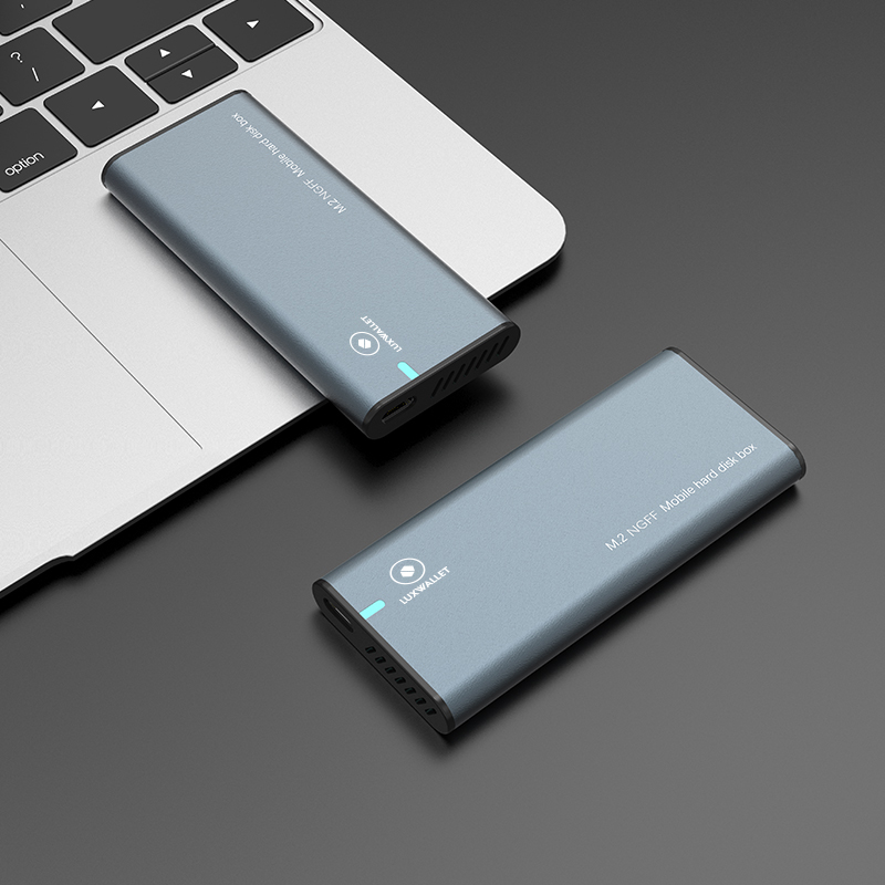 Luxwallet HD480 Externe Harde Schijf Behuizing – M.2 NGFF SSD Naar USB 3.1 Type-C Gen2 SATA3 Converter – 5Gbps – Ondersteunende Hard Drives 2242/2260/2280 – Grijs