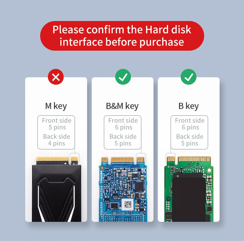 Compatibiliteit: Dankzij de brede compatibiliteit is hij compatibel met B-Key en B&M Key SSD’s. Ondersteunt de volgende type hard drives: 22*42MM, 22*60MM, 22*80MM NGFF solid state harde schijf (Let op harde schijf niet inbegrepen).