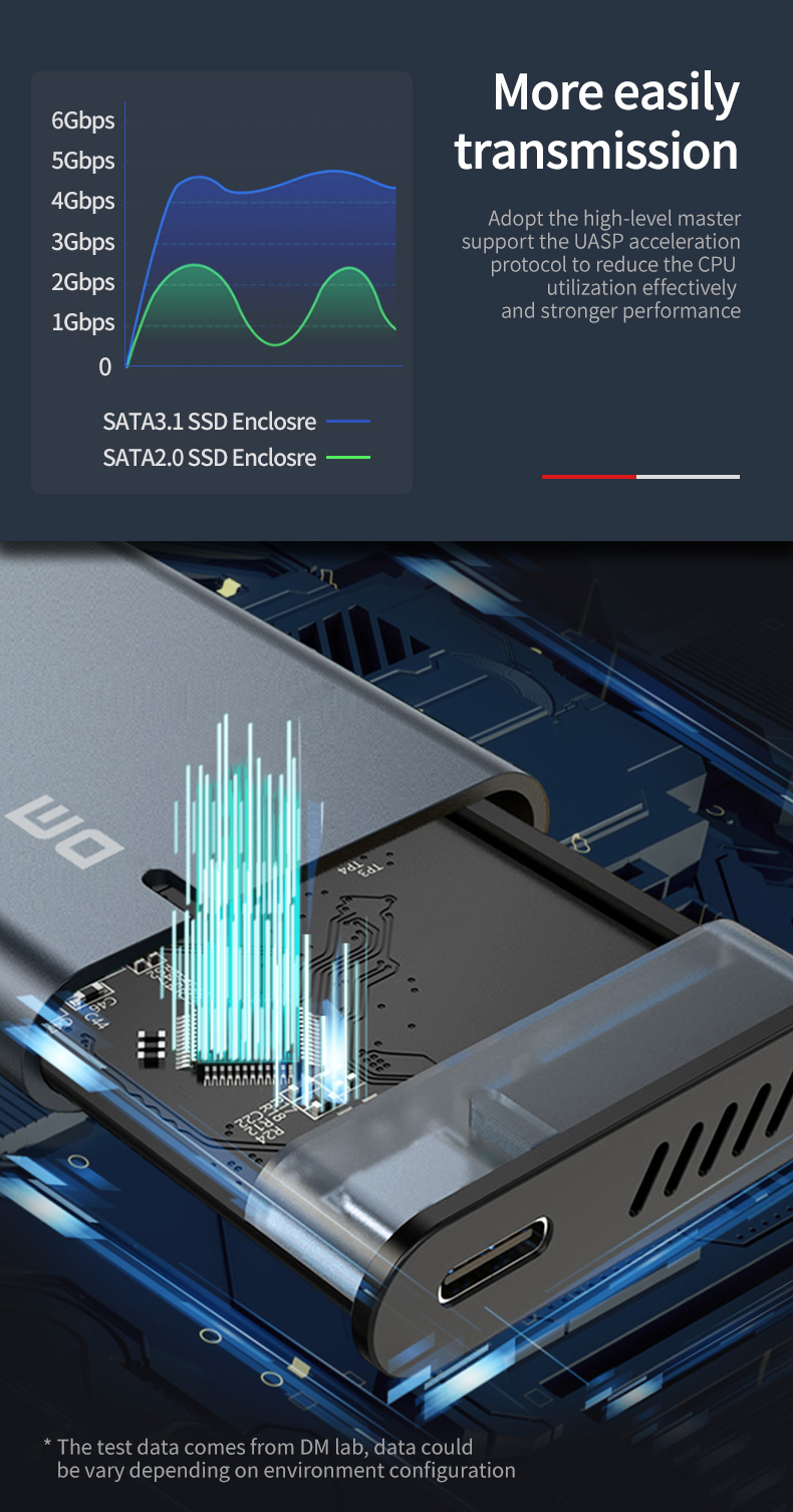 Bescherming: HD480 Type-C 3.1 Gen2 B&M/B Key M.2 NGFF SSD Box, die naast zijn innovatieve kenmerken belang hecht aan de bescherming van SDD-schijven, beschermt het systeem tegen schade in gevallen zoals kortsluiting, hoge spanning, overbelasting temperatuur en lage stroom.