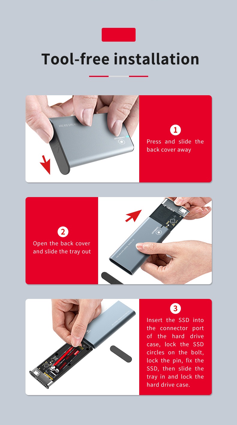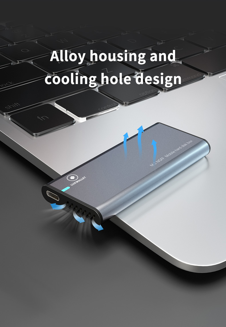 – Verbindt NGFF Sleutel SSD veilig naar computer via USB C poort.
