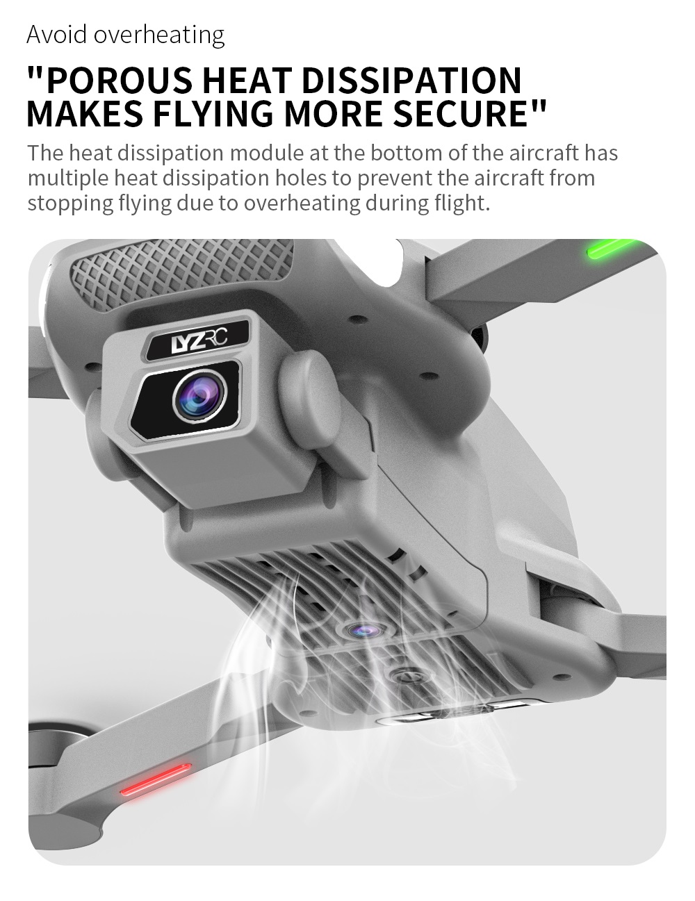 -Technische kunststof: De romp is gemaakt van extreem sterke technische kunststof. Het is lichtgewicht en duurzaam. De drone is gemaakt om tegen een val te kunnen.
