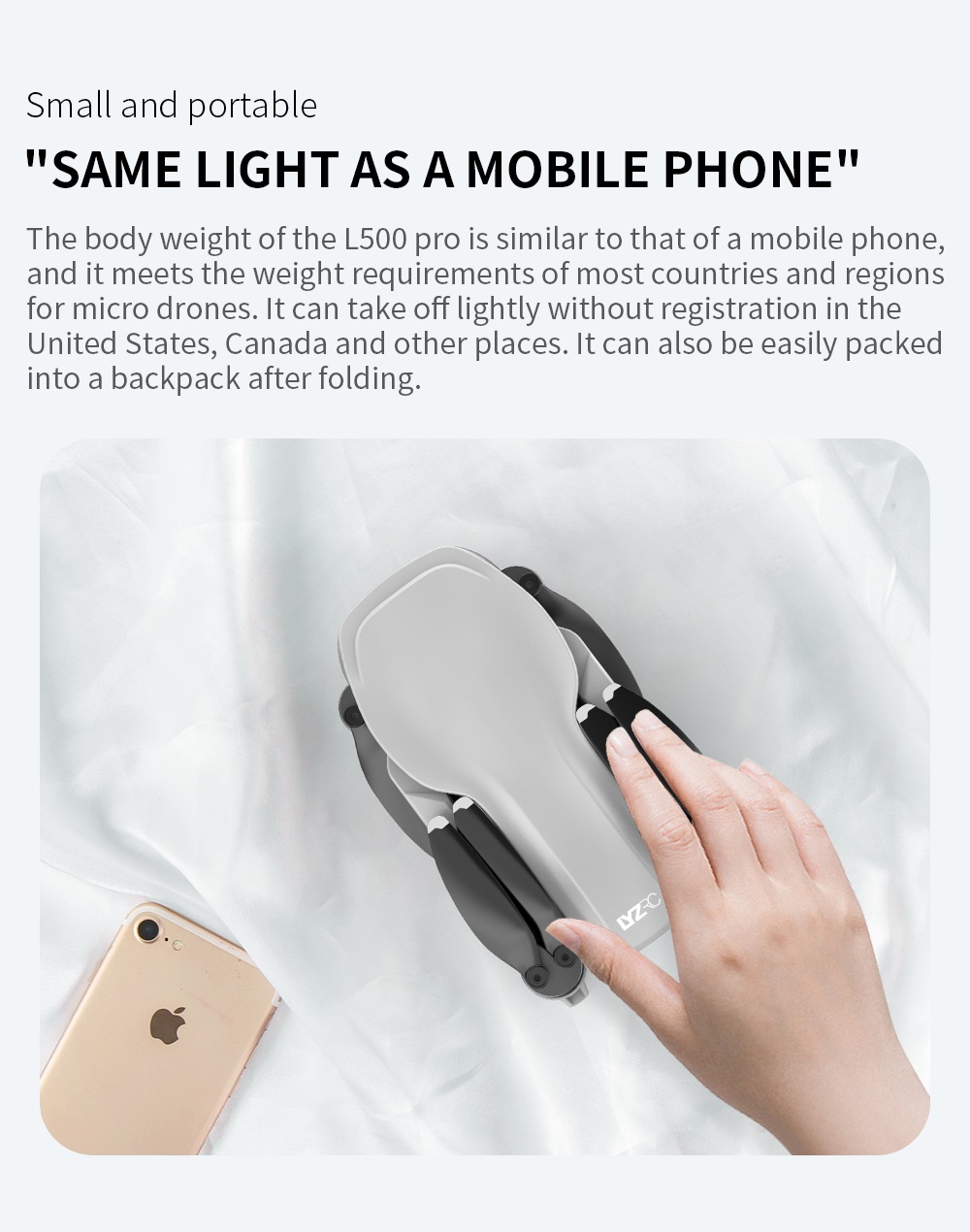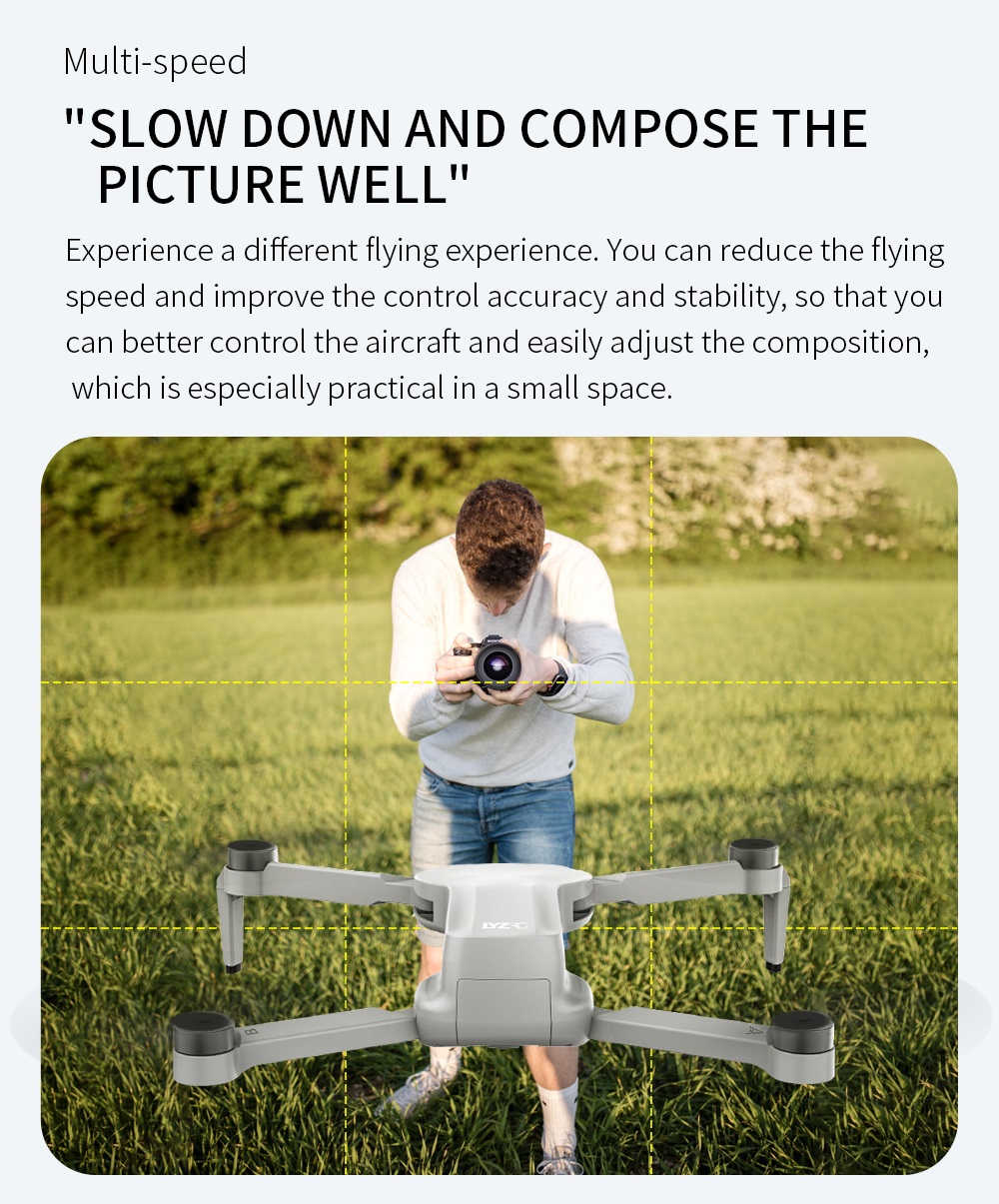 – Compact en licht: Met opvouwbare arm, compact en gemakkelijk te dragen. De drone weegt slechts 214 gram.
