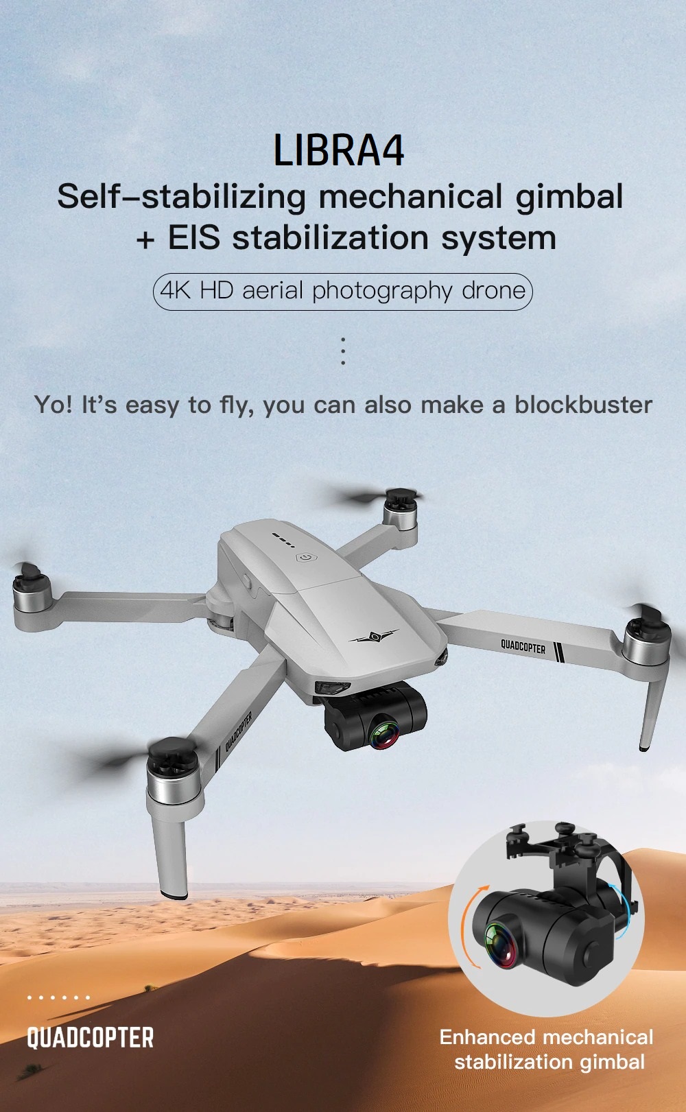 LUXWALLET Libra4 – FPV Drone Quadcopter – 25.2Km/h – WiFI GPS 1.2 KM – 2-As Gimbal – Full HD Camera + VR Bril – Zilver