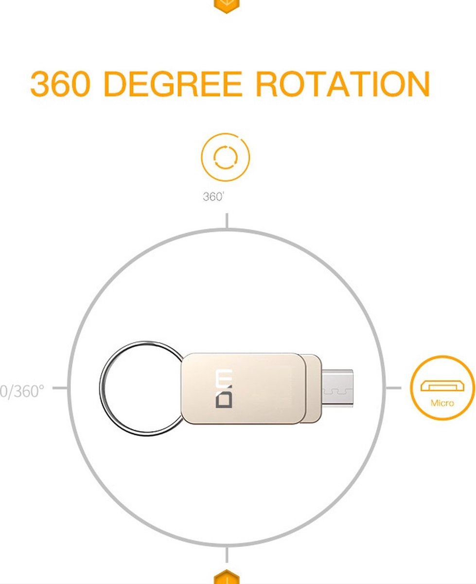 USB 2.0 en Micro USB in 1: De flasdrive is gemaakt voor zowel USB kant als Micro USB kant. Zo kun je de USB kant gebruiken voor op je computer om gegevens op te zetten of eraf te halen en de Micro USB kant kun je gebruiken voor je Android smartphone die een micro USB ingang hebben. Hier kun je dan via je ‘’ bestanden ‘’ gegevens zoals foto’s, video’s etc op je flashdrive zetten om deze vervolgens op je computer eraf te halen. Het kan ook andersom gebruikt worden , waarbij je gegevens van de USB op je Smartphone kan overzetten.