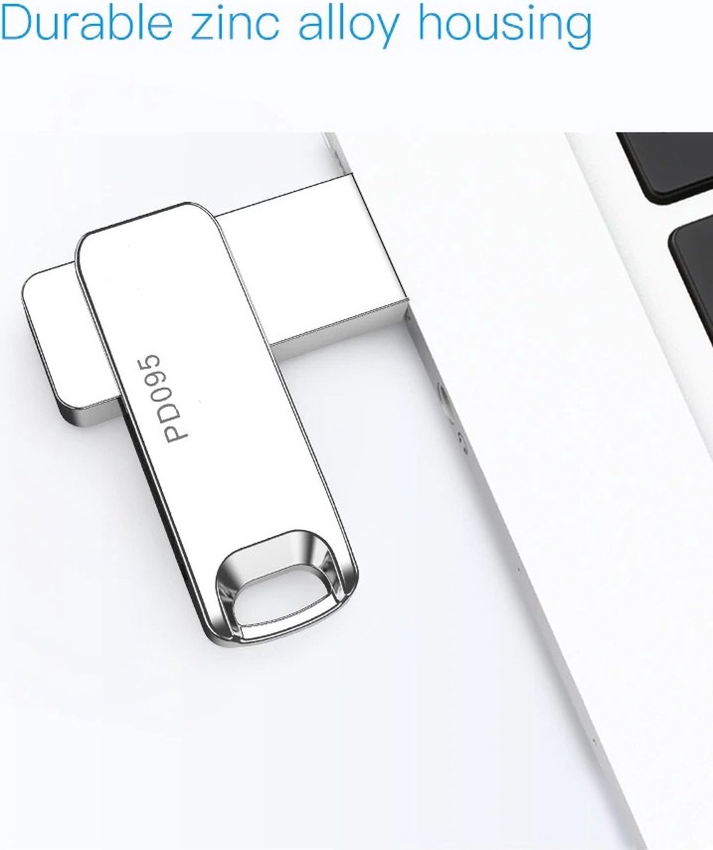 Metalen behuizing van zinklegering: Het ontwerp van de metalen behuizing is van hoge kwaliteit maakt het duurzaam, vochtbestendig en ziet er zakelijk uit. Daarnaast heeft het een sleutelhanger opening waarbij je je usb kunt aansluiten op een sleutelhanger of andere toebehoren.