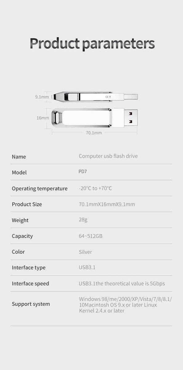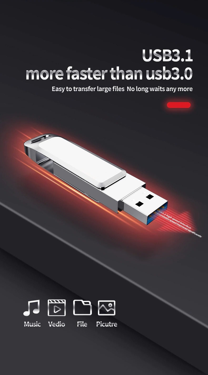 Opslag: USB 3.0/3.1 stick heeft een ultrasnelle gegevens overdrachtssnelheid en een grote capaciteit tot 512 GB, die al je favoriete media en belangrijke documenten kan bevatten. Het kan ook opslaan en overbrengen tussen verschillende apparaten, terwijl het een verscheidenheid aan gegevens ondersteunt, zoals muziek, video’s, foto’s, films, handleidingen, software, enz., om aan je dagelijkse behoeften te voldoen.
