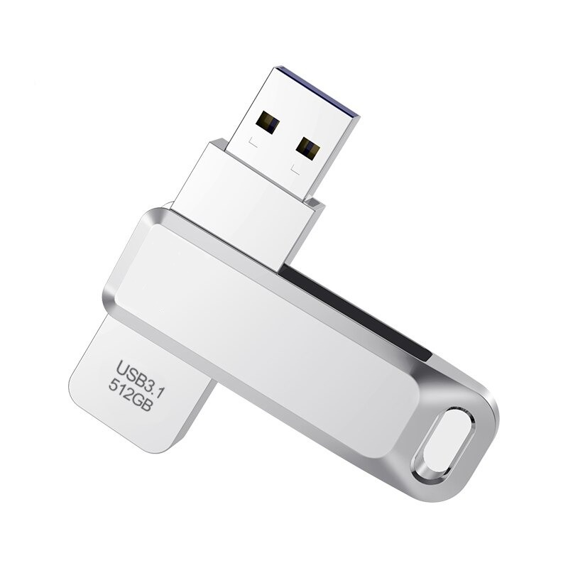 LUXWALLET PD7 – Metalen USB Stick 512GB USB 3.1 Gen1 – Geheugen – Opslag – USB 3.0– 360 Graden Roteerbaar – 5 Gbps – Geschikt voor Windows/MAC/Linux- Zilver