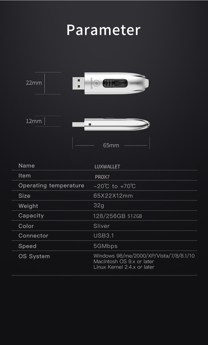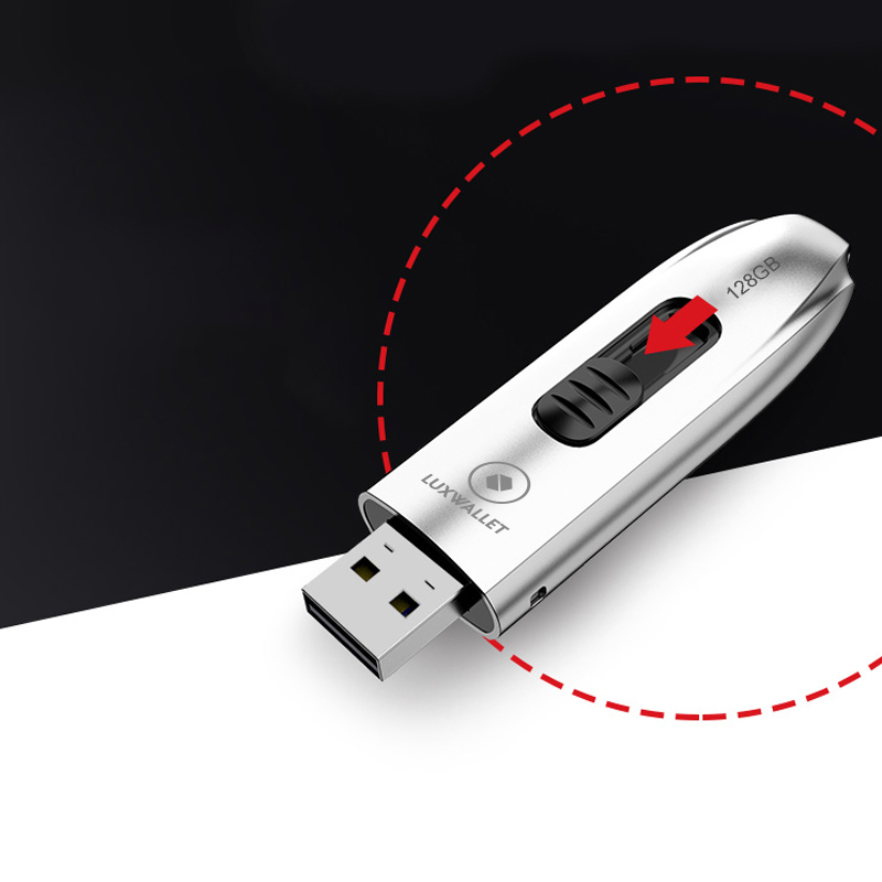 LUXWALLET PROX7 – Metalen USB 3.1 Stick – 128GB Opslag – Draagbare Opslag Flash Drive – Uitschuifbare Ontwerp – Zilver