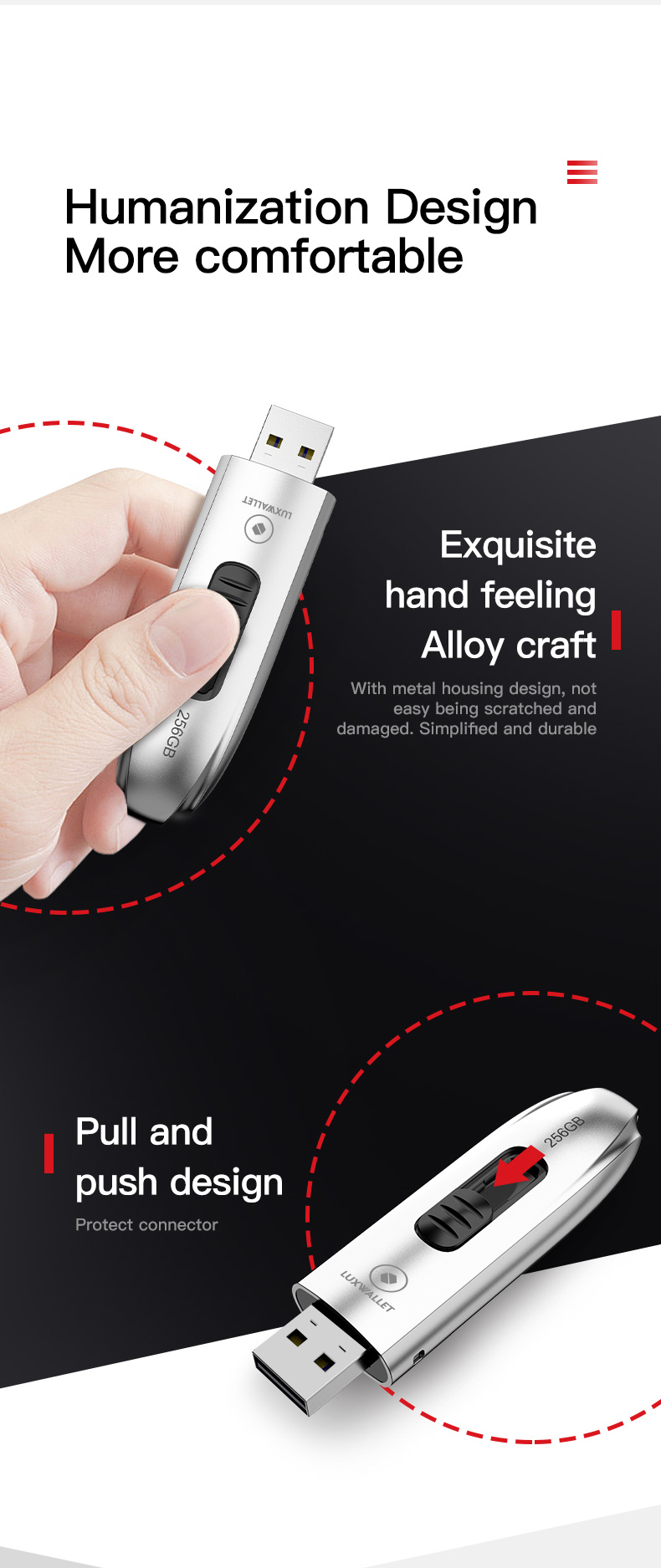 Metalen behuizing van zinklegering: Het ontwerp van de metalen behuizing van superieure kwaliteit maakt het duurzaam, vochtbestendig en laat de USB-stick er zakelijk uit zien.