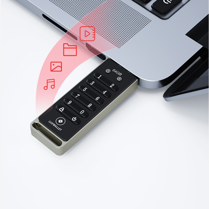 LUXWALLET SecureGuard – USB 3.0 Flashdrive Met Wachtwoord – 64GB USB Stick – Beveiligd – Geschikt voor o.a. Crypto / Bitcoin ww