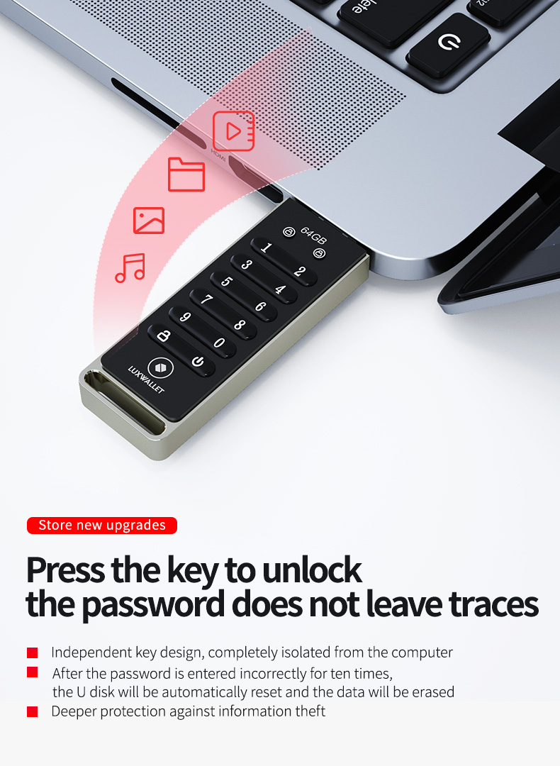 Kies voor de hoogste standaard in beveiligde draagbare opslag met de LUXWALLET SecureGuard USB 3.0 Flashdrive met wachtwoord. Snel, veilig en ontworpen voor jouw gemoedsrust – maak jouw digitale wereld veilig en efficiënt.