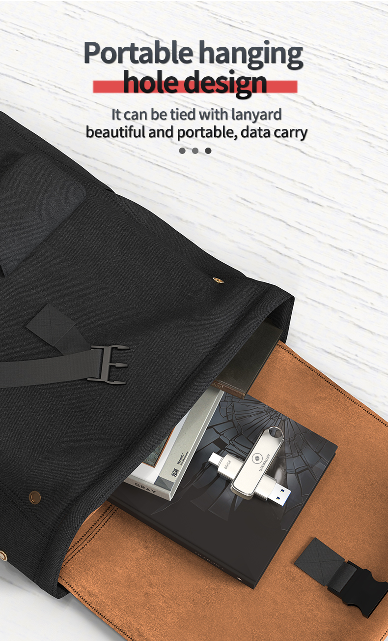 Handige Hanging Hole en 90° Rotatie: Dankzij het slimme ontwerp met een ophanggat kun je de flashdrive gemakkelijk bevestigen aan je sleutelbos, lanyard of tas, waardoor je hem altijd binnen handbereik hebt. De 90° rotatiefunctie maakt het eenvoudig om de USB-connector te draaien en te beschermen wanneer deze niet in gebruik is.