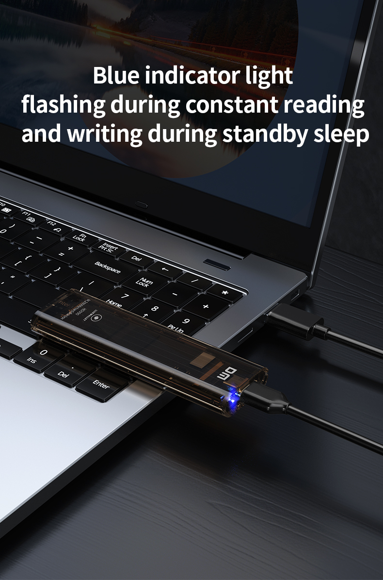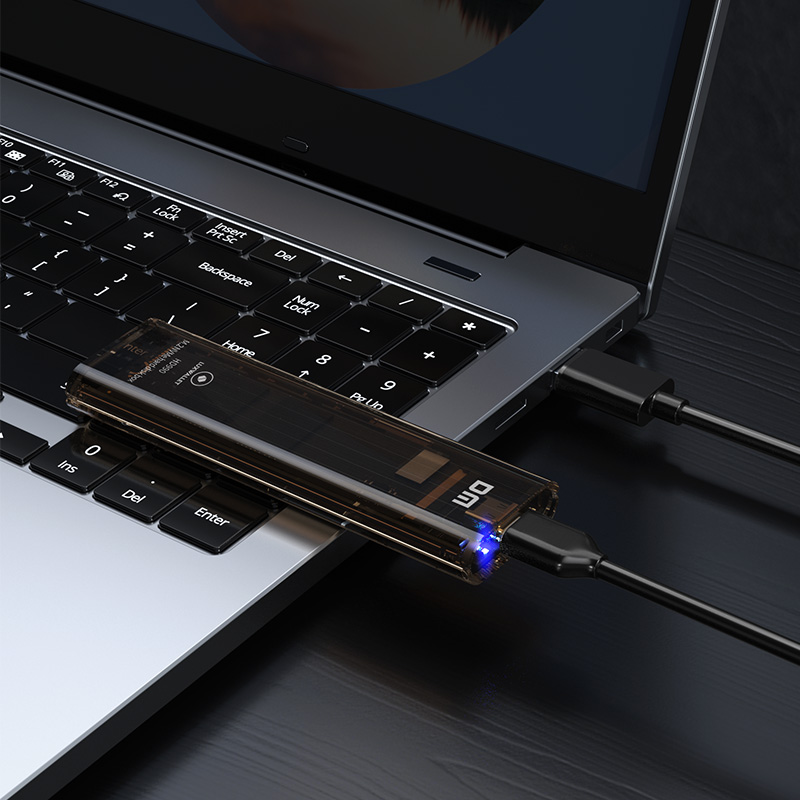 – LED-indicator: De behuizing is voorzien van een handige LED-indicator die de status van de verbinding aangeeft, zodat je snel kunt zien wanneer de SSD actief is en gegevens overzet.